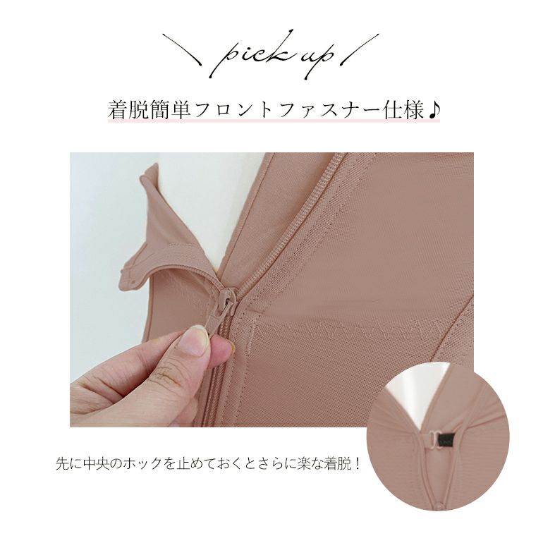 【締めつけ過ぎず、楽にウエストすっきり見せ!着脱簡単フロントファスナー】