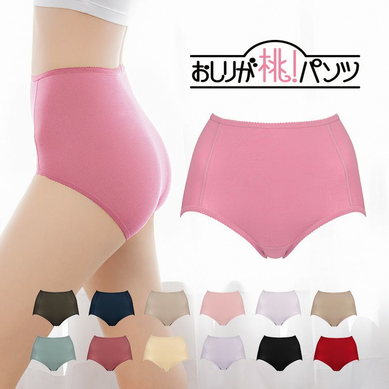 素肌に吸い付くようなフィット感が魅力の、肌に優しいナイロン綿ベア天竺を使用した、おしりが桃!シリーズのスタンダードショーツです。