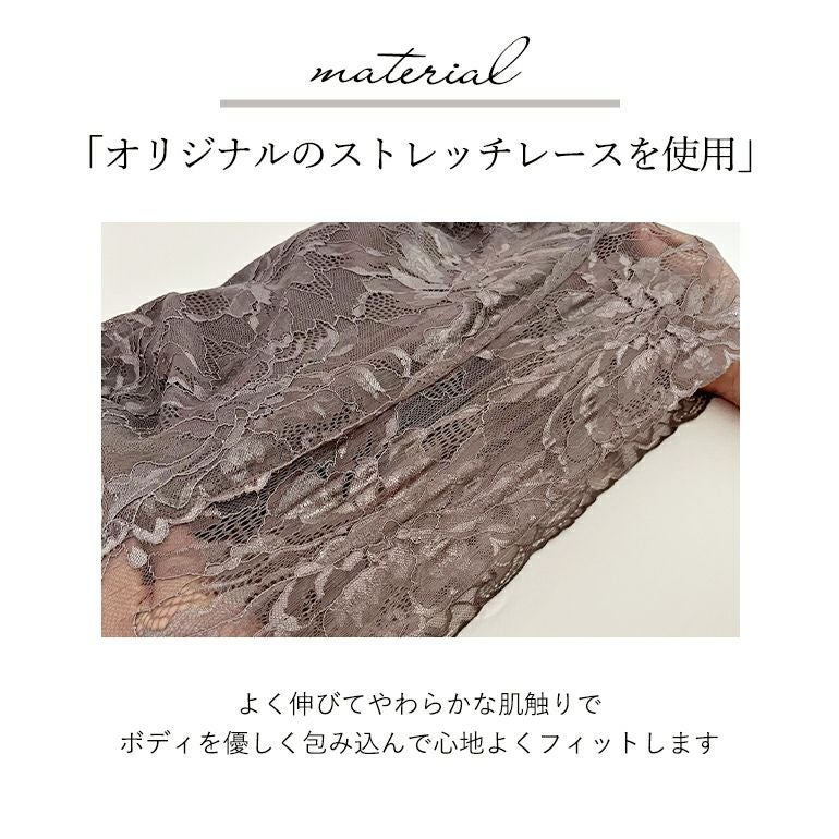 ※ストレッチ性が高いレース設計のため、未着用時に所々ループ状に糸の浮きが見られますが、ほつれではありませんので、お手入れ時には無理に引っ張らないようお願いいたします。