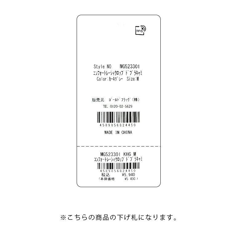 バックはバストの重みを面で支えるパワーネット素材のアンダーベルトを内蔵。脇接ぎ部分は肌に直接縫目が当たらないよう起毛素材のループでカバーし、ずれ上がりにくくソフトな着心地です。