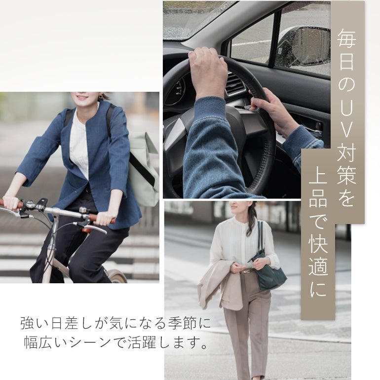 ドライブや自転車、日常のお出かけ、アウトドアまで、幅広いシーンで手元を美しく守ります。