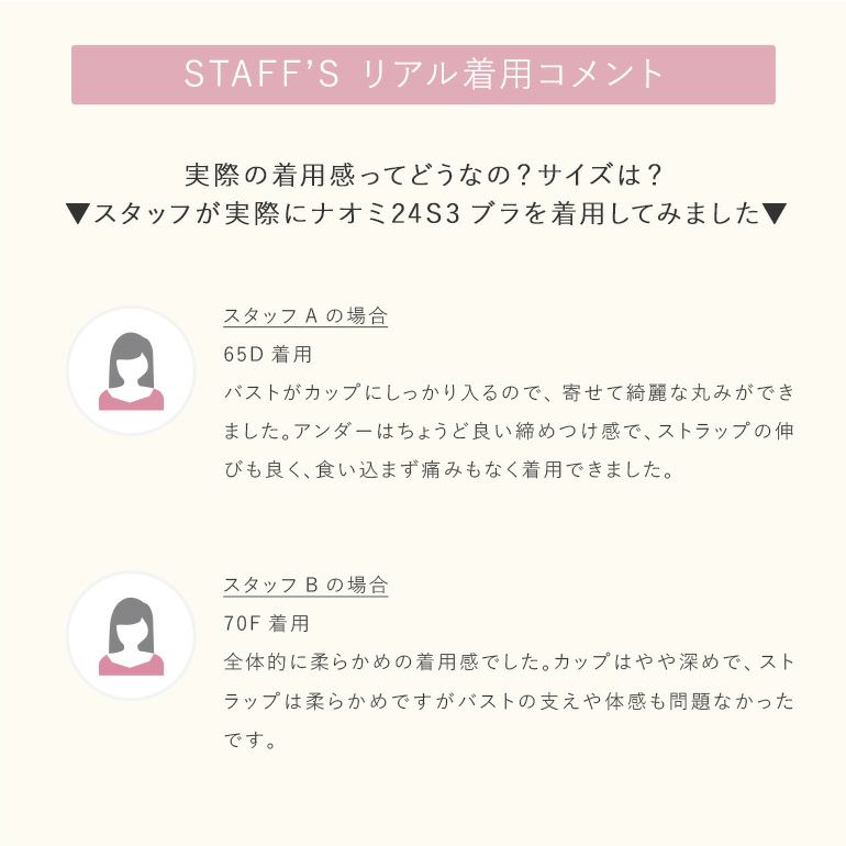 - 厚手の不織布*を使用した3枚接ぎで、カップが立ちやすく、しっかりとバストを包み込みます。