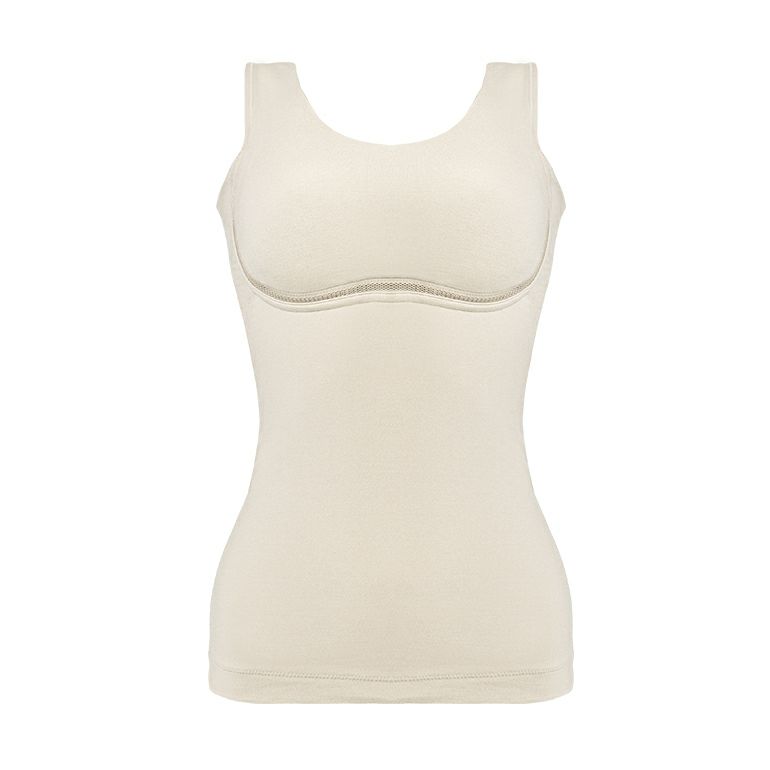 伸縮性に優れ、吸汗性・速乾性を備えた綿混素材「ナイロン綿ベア天竺」を使用した、ゆきねえシリーズの補整ノンワイヤーブラキャミ。