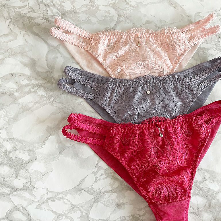 - 裏打ちは、ブラと同色のトリコット*を使用。滑らかな肌触りで、はき心地が良いです。