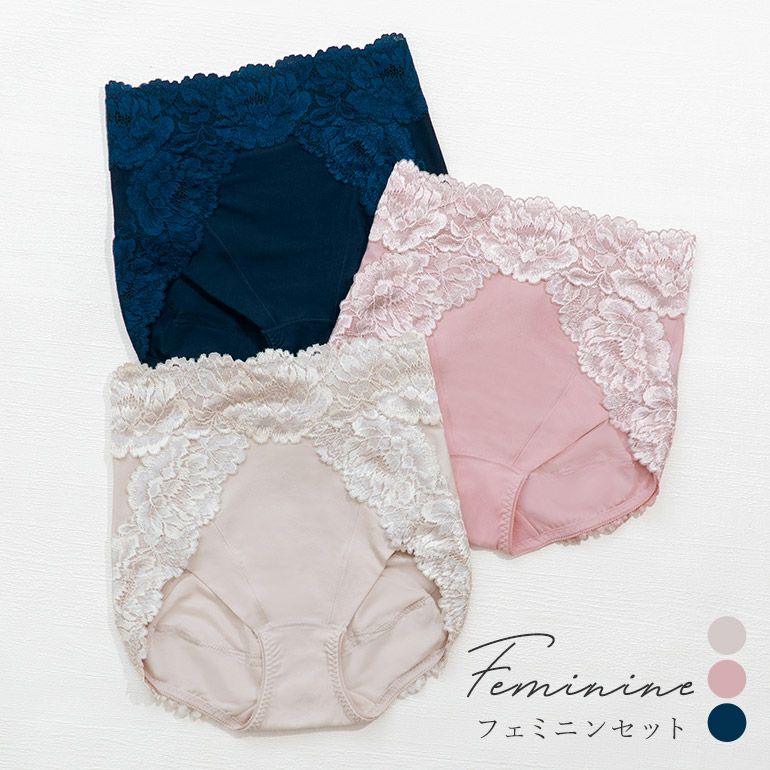 オリジナル細幅レースをウエスト一周使用し、締めつけ感や段差を和らげ楽な着心地です。面でフィットして食い込みにくく、ウエストから生地が丸まったりずれ落ちたりしにくいです。ハイウエストでお腹周りをすっぽりと包み込みます。