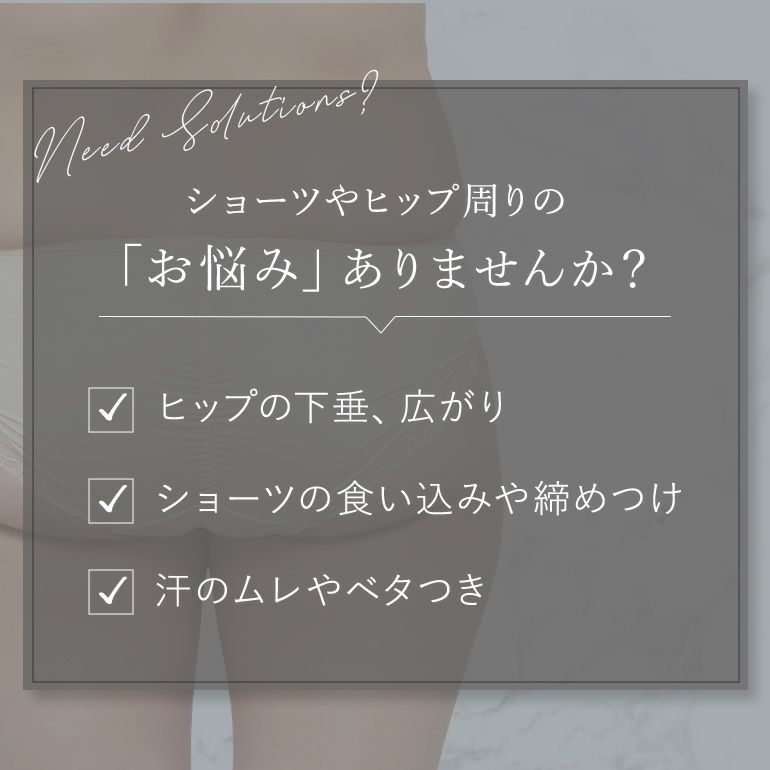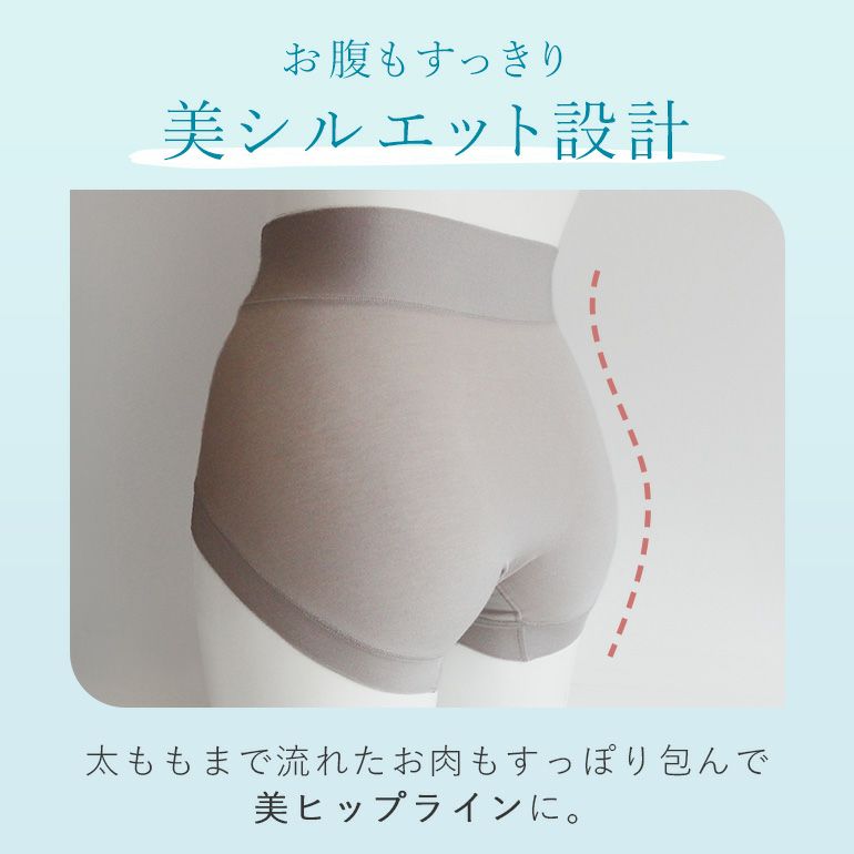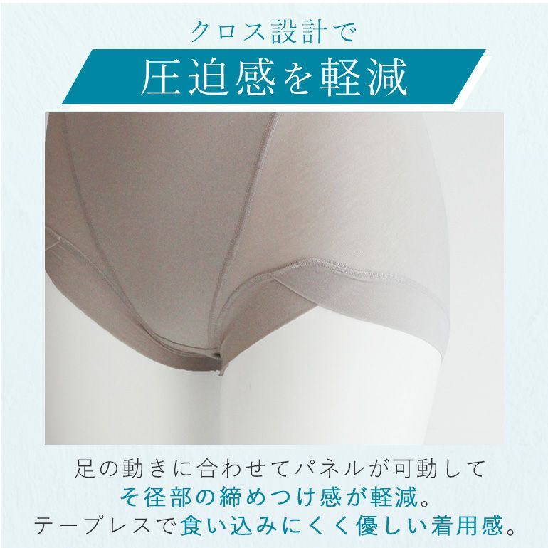 安定感のある深いはき込み丈で、汗をかいてもサラッと快適にお過ごしいただける補整ショーツです。