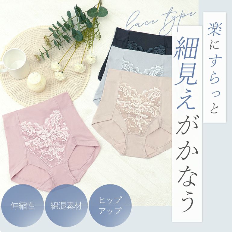 - 身生地・レース・パワーネットの三重構造で、お腹をすっきり整えます。