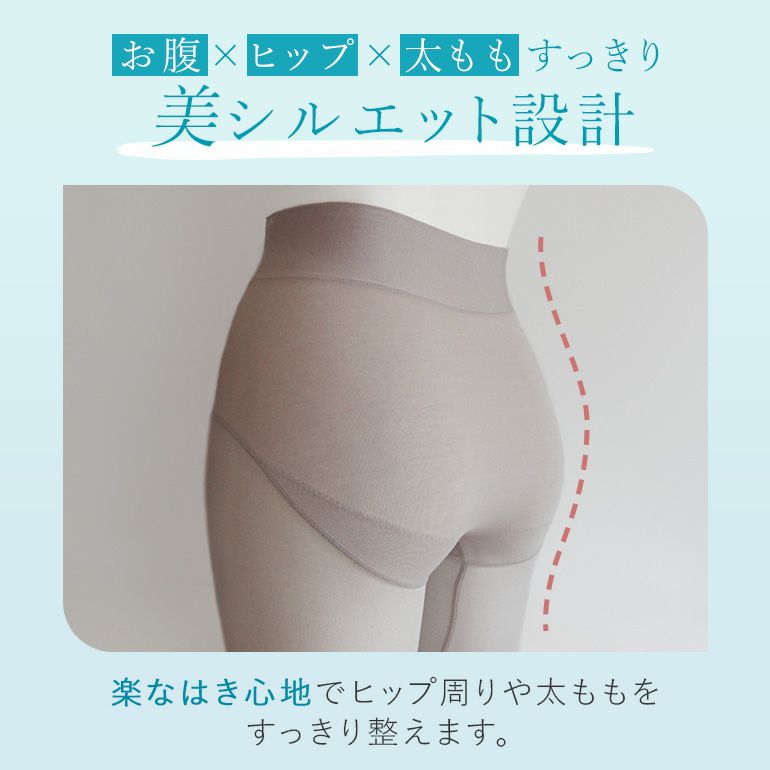 異なる素材を使用することで、楽なはき心地ながらヒップ周りをすっきり整え、ガードルが苦手な方にもおすすめのソフトな着心地です。