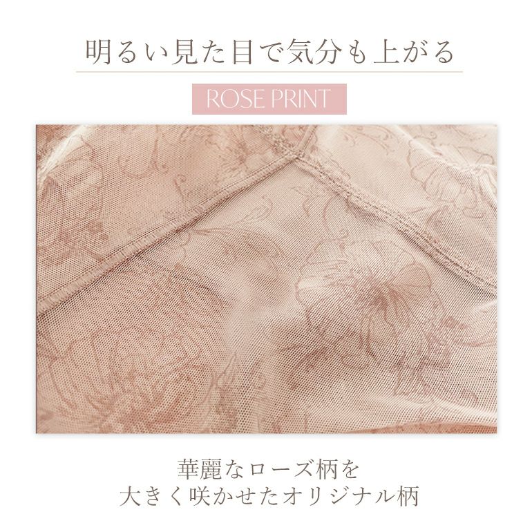 - 接触冷感機能を備え、伸縮性と通気性に優れたソフトパワーネット素材(ナイロン82%・ポリウレタン18%)を使用。体の動きにフィットしやすく、心地よくシェイプします。