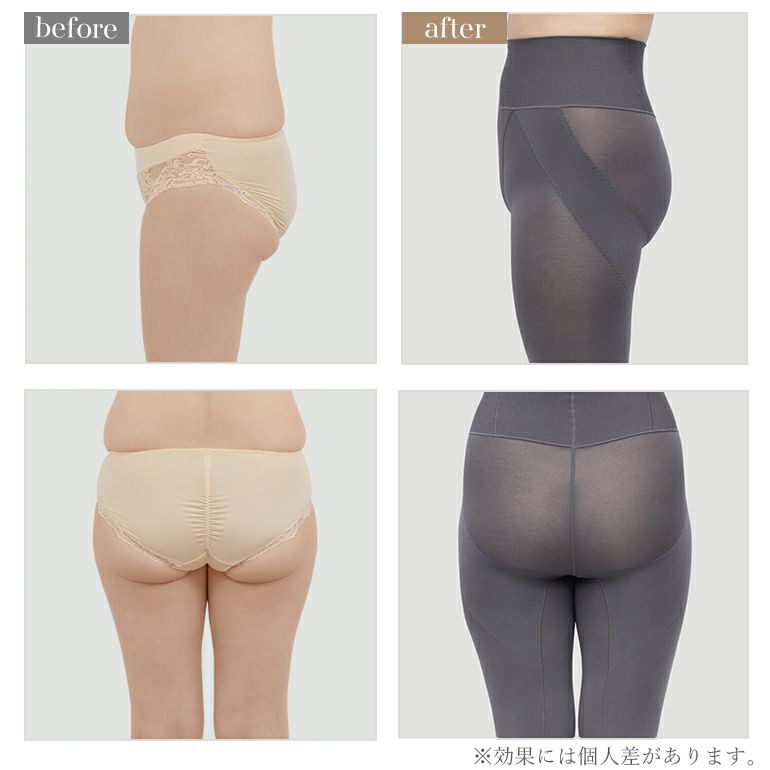 - パワーネット素材のヒップアップベルトがヒップを下からすくって持ち上げ、幅広パネルがお尻と太ももの境目を作り丸みのある綺麗なヒップラインに整えます。