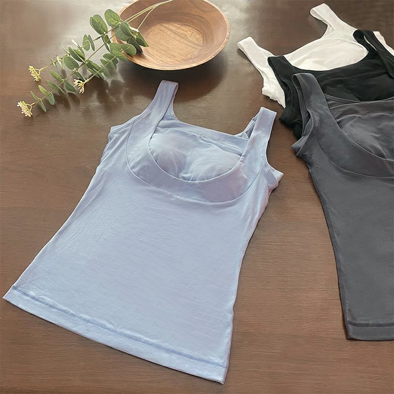 スクエア風ネックラインで、アウターから透けたときもインナーを感じにくいデザインです