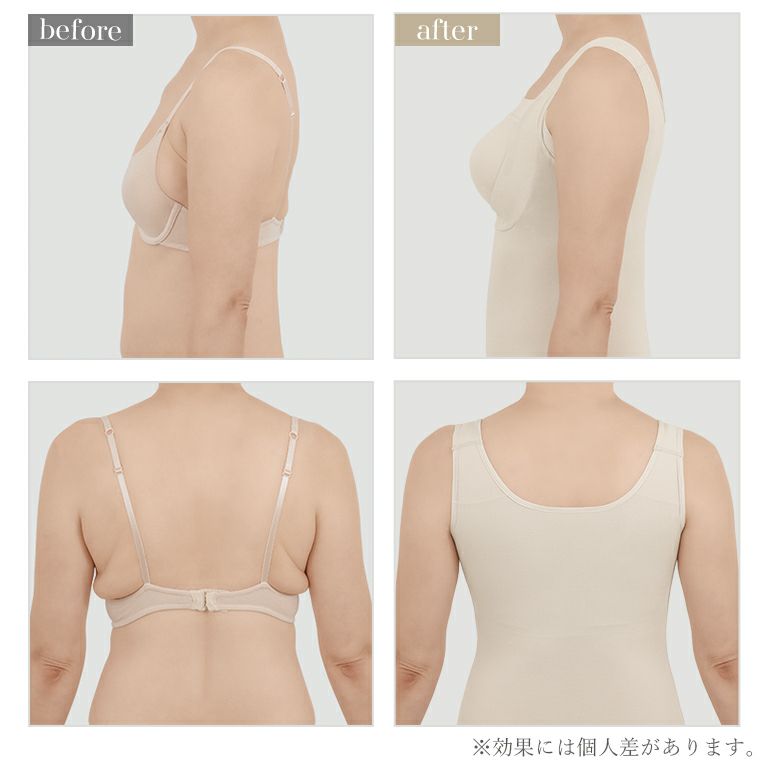 バスト部分に施されたブラデリス独自の補整パターンが背中や脇に流れたお肉を集め、サイドをすっきり整えて美しいバストシルエットを作ります。