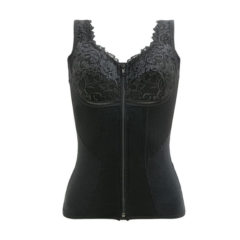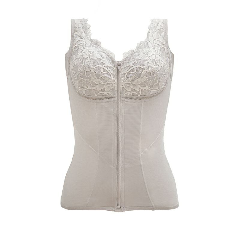 後ろに手を回さずラクに着脱できるフロントファスナータイプの補整ノンワイヤーブラキャミです。