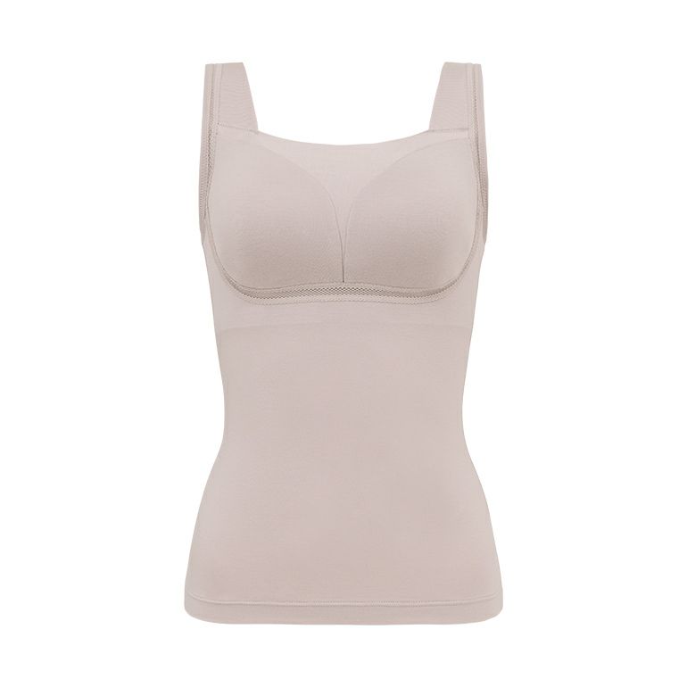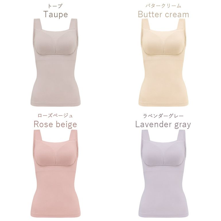 お腹とバックは、身生地一枚仕様でなめらかな着心地です。幅広のタンクトップ型ショルダーは肩への負担を軽減し、良く伸びて幅広い体型にフィットします。