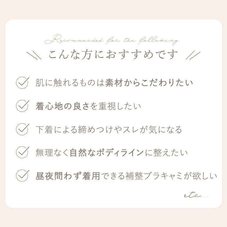 【シルク素材配合!柔らかな着心地で体を優しく包み込む補整ノンワイヤーブラキャミ】