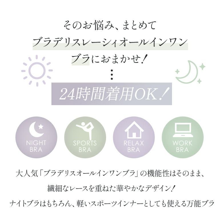 他の画像を見る ブラデリス フレンドリーサポートブラ ¥ 4,950 ¥ 3,465 税込 SALE 24時間着用可能 ナイトブラ 補整ノンワイヤー ステップ0 キープ 綿混素材 背中すっきり ホックなしソフトタイプ カートに入れる お気に入りに登録する