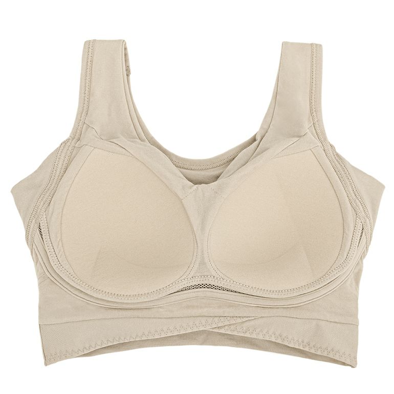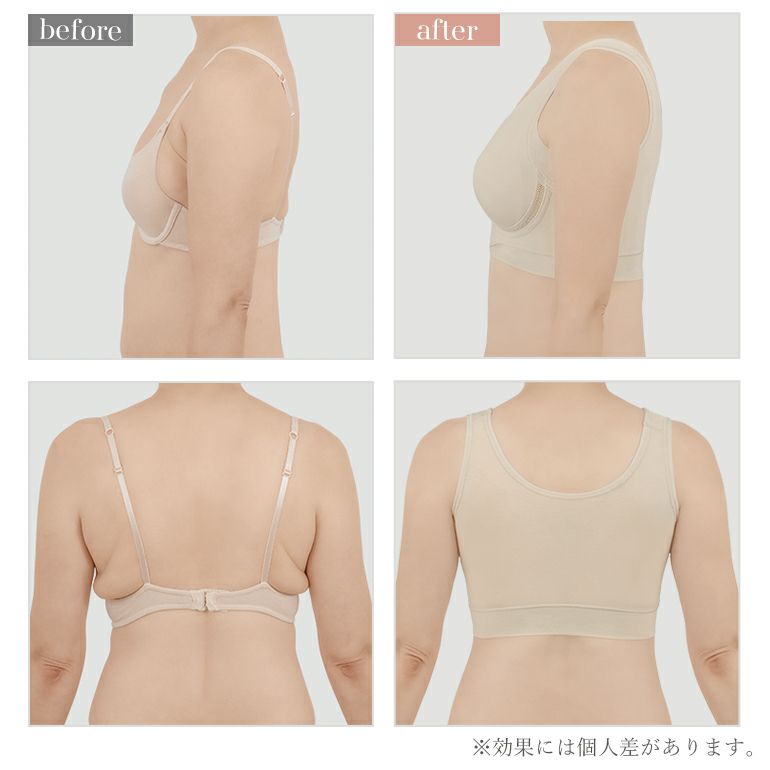 - バストの重みを面で支える幅広ショルダーが、肩への負担を軽減します。伸縮性に優れた身生地素材のため、幅広い体型にフィットし、ずれ上がりを軽減します。