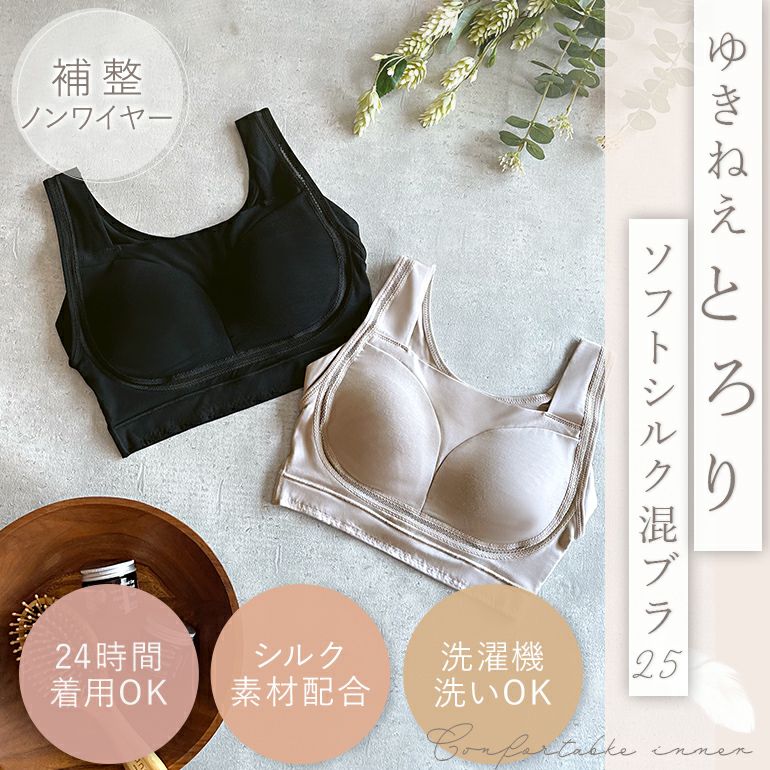 【シルク素材配合!柔らかな着心地で体を優しく包み込む補整ノンワイヤーブラ】