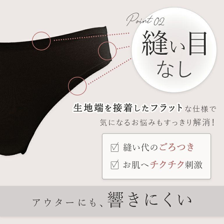 タテ・ヨコどちらの方向にも良く伸びるフリーカット素材で、段差を解消しアウターに響きにくく、日常使いはもちろん、ラインの出やすいアウターを着用した際や、スポーツ・就寝時にもぴったりです。