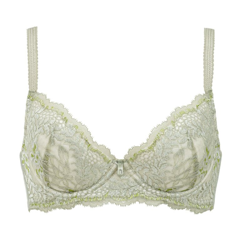 3月から5月に開花するジャスミンの咲く庭を表現した2浴染め*のBRADELISオリジナル柄のストレッチリバーレース*を使用したステップ1の補整ブラジャーです。ボタニカル柄のモチーフを浮き立たせる光沢糸の陰影とスカラのフリンジが表情豊かなレースと、パワーネットを切り替えたシャープなデザインです。クリスタルのスクエアモチーフがアクセントです。