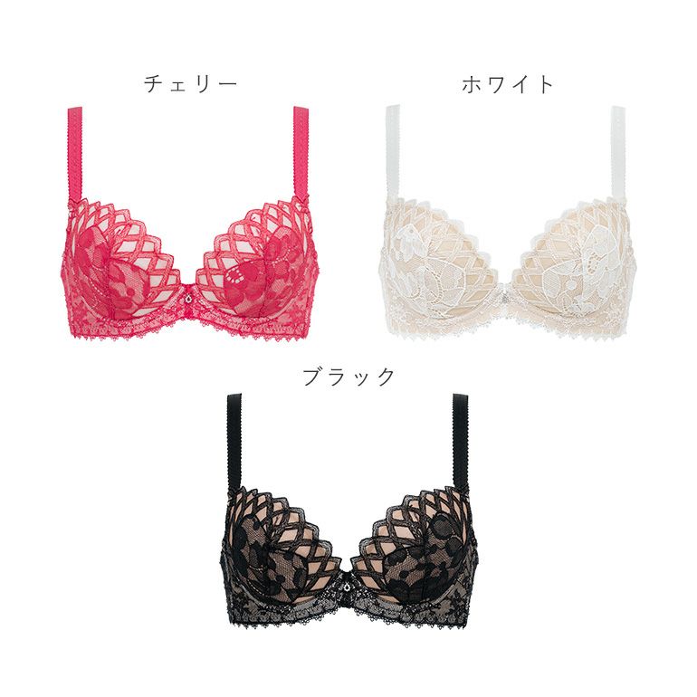 清楚な印象の「ホワイト」、ヴィヴィッドで華やかな「チェリー」、レースの透け感が際立つ「ブラック」の3色展開です。