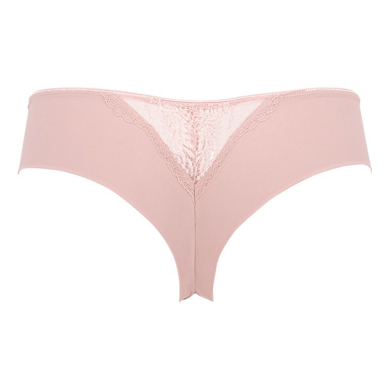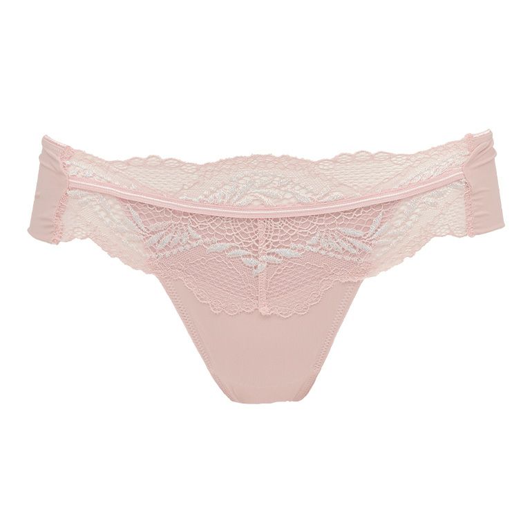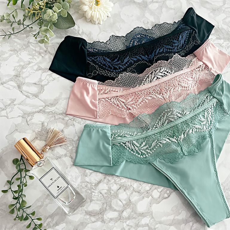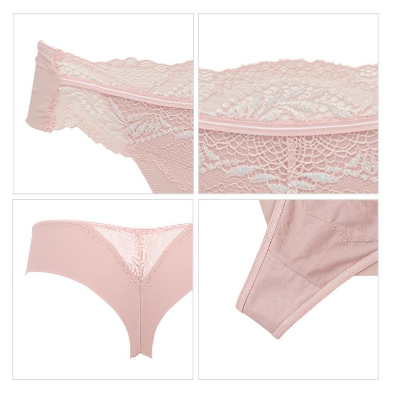 フロントの裏打ちは透け防止のため、ブラと同色のトリコット*を使用。バックはゴムを使用しないハイゲージ2way生地のわさ仕様*なので、段差になりにくく優しい肌触りです。