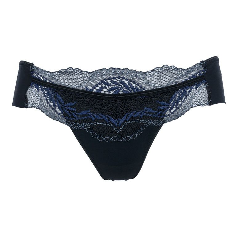 スカラの葉っぱ模様と幾何学柄の編み目の組み合わせが特徴的なラッセルレース*を使用した、モダンなデザインのタンガです。フロント上辺のレース部分は程よく肌が透けて見え、軽さを感じられるデザインです。