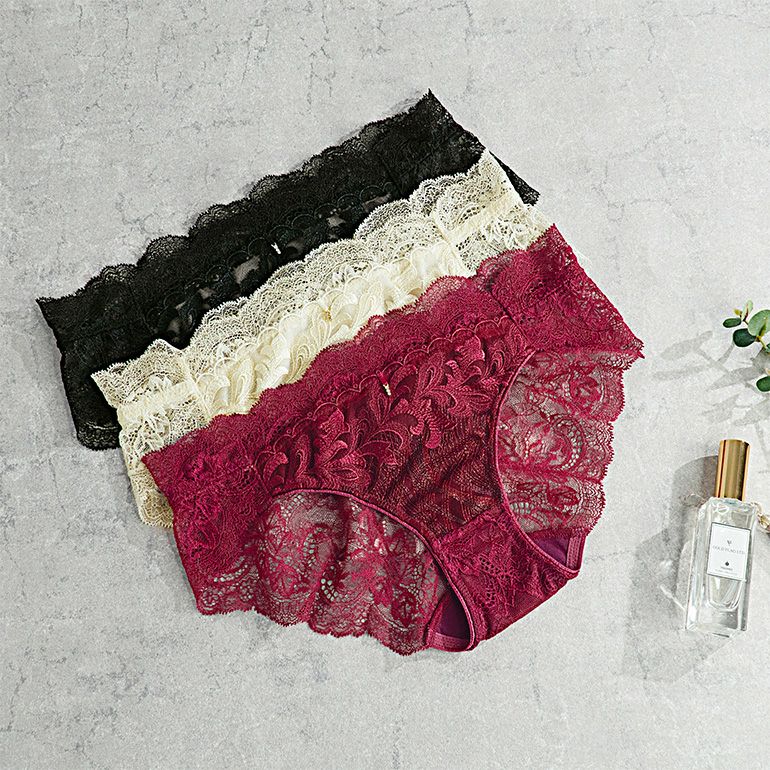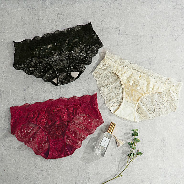 2種類のレースを使用した華やかでシャープな総レースデザインのパンティです。