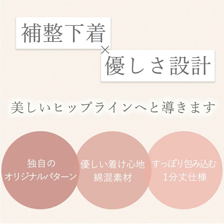 - パワーネットのパネルをくり抜き、伸縮性に優れたナイロン綿ベア天竺*の一枚設計で、集めたお尻を優しく包みます。ヒップの丸みを潰さず上向きのヒップラインに整えます。