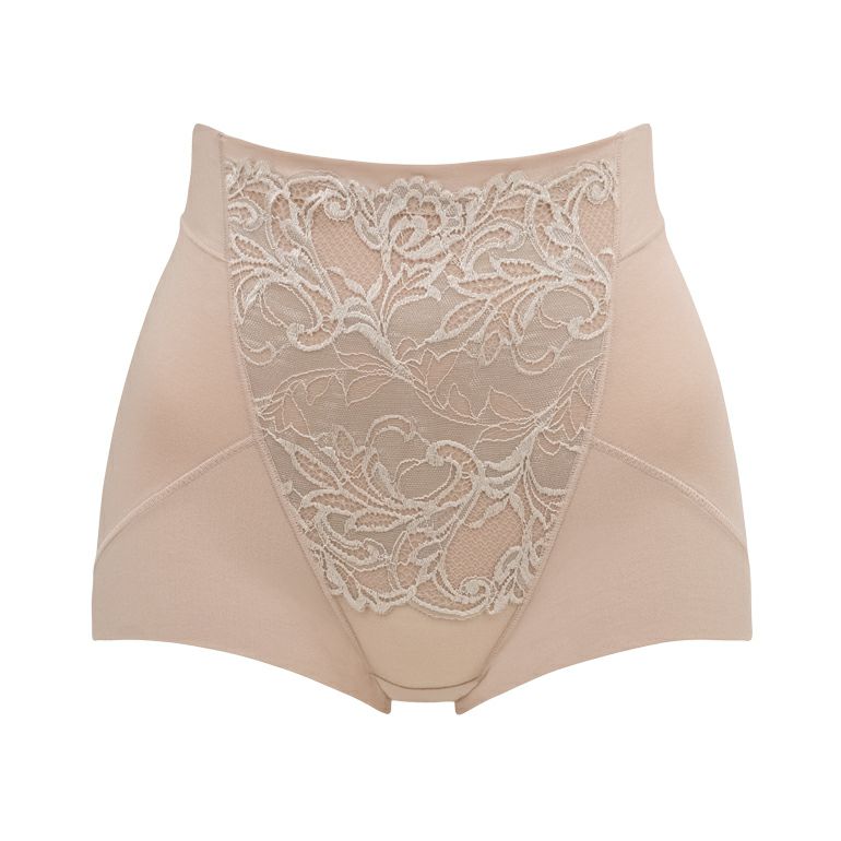 豊かに広がる葉やお花の柄とネット目の繊細さがラグジュアリーな、二浴染め*落下板ストレッチレースを使用した補整ショーツです。ウエストからヒップまですっぽりと包み込むオリジナル立体パターンで、ヒップラインを美しく整えます。