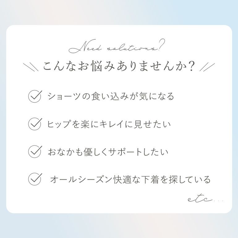 - 生地一枚仕様で流れたお尻のお肉をきれいに包み込み、ヒップラインを美しく整えます。