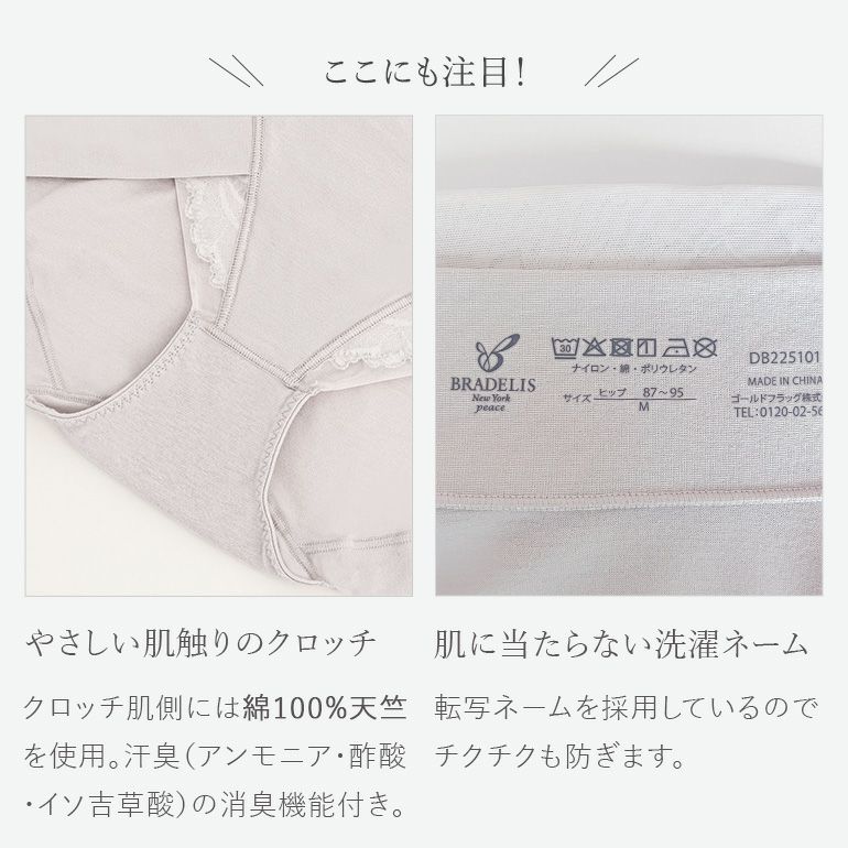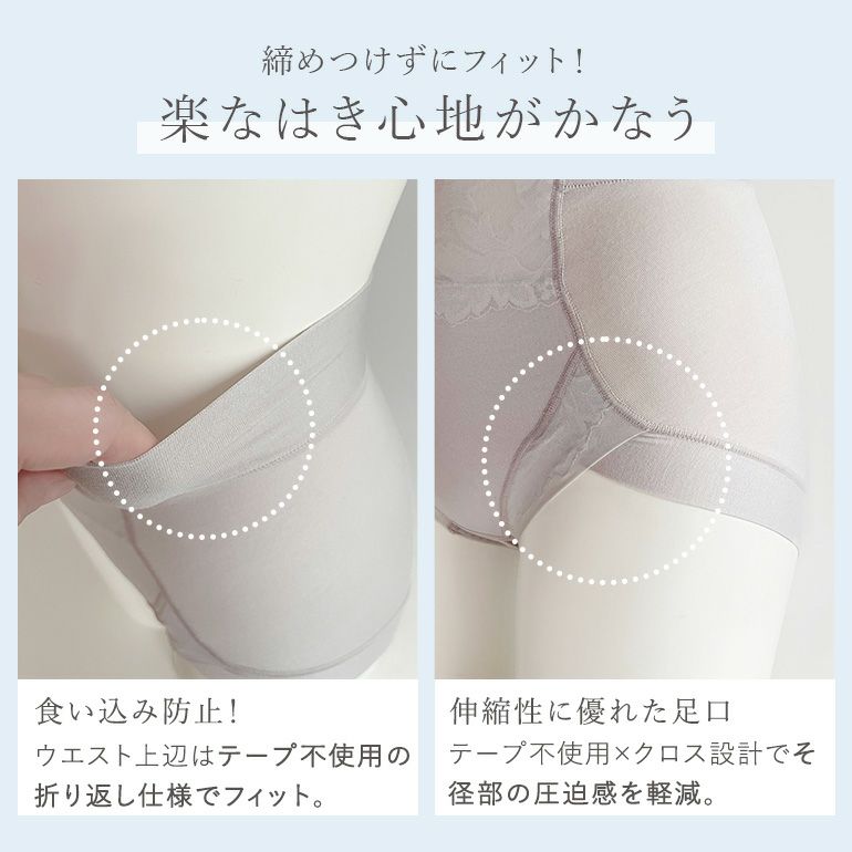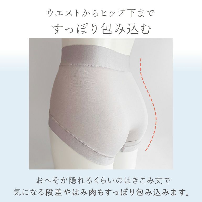- 伸縮性のある二重の身生地でぐるりと包み込み、お尻のお肉がもれないようにサポート。