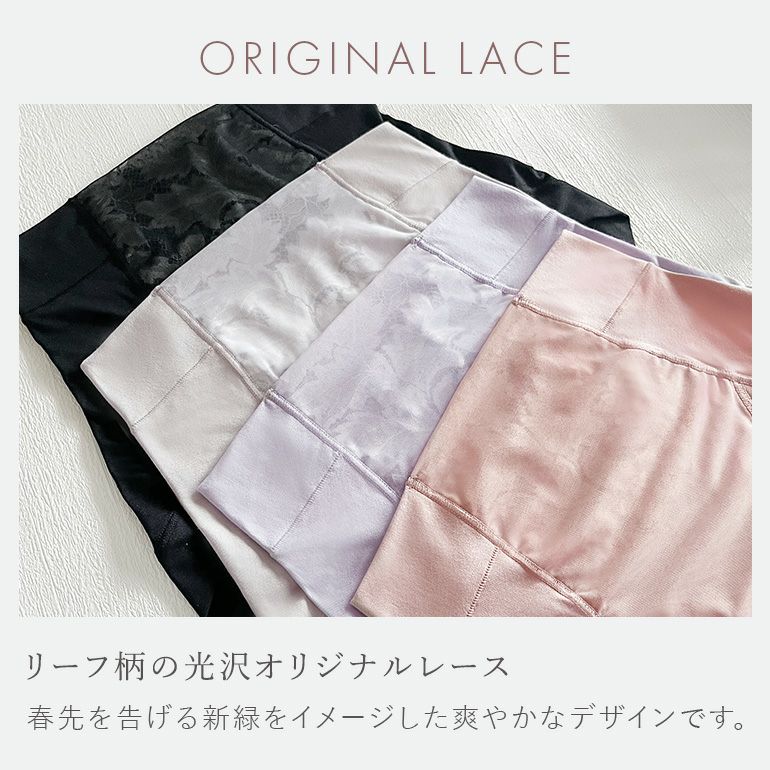フロントには春先を告げる新緑をイメージしたリーフ柄レースを使用した、爽やかなデザインが特徴です。