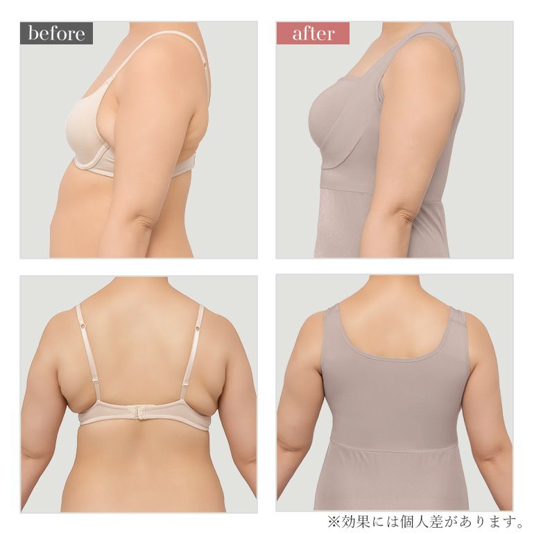 - バスト周りをぐるりと囲い込むパネルでバストを寄せ上げます。カップと身生地は縫い付けないセパレート構造で、バスト下にしっかりフィットし幅広いサイズに対応します。