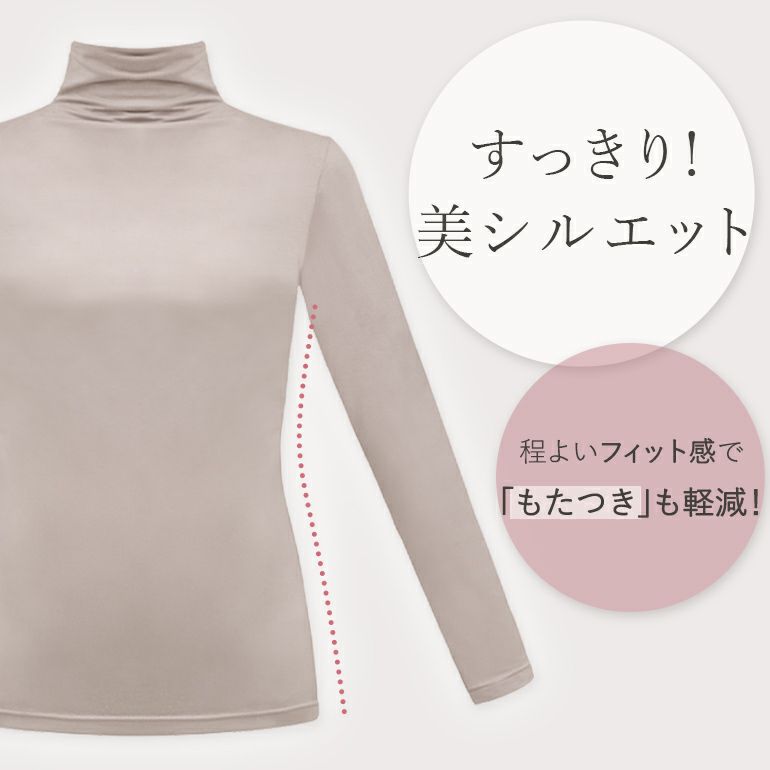 ハイネックインナーは、長すぎず短すぎずの襟の高さに設定しているので、トップスのインに重ね着して襟をのぞかせるコーディネートも可能。襟のチクチクが気になるタートルネックのインナーにもおすすめです。