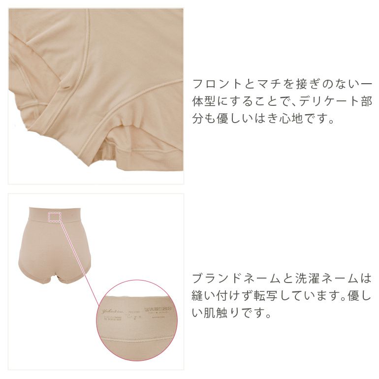 - 肌側は、肌触りの優しい綿100%天竺*を素材を使用。フロントとマチに接ぎがなく快適なはき心地です。