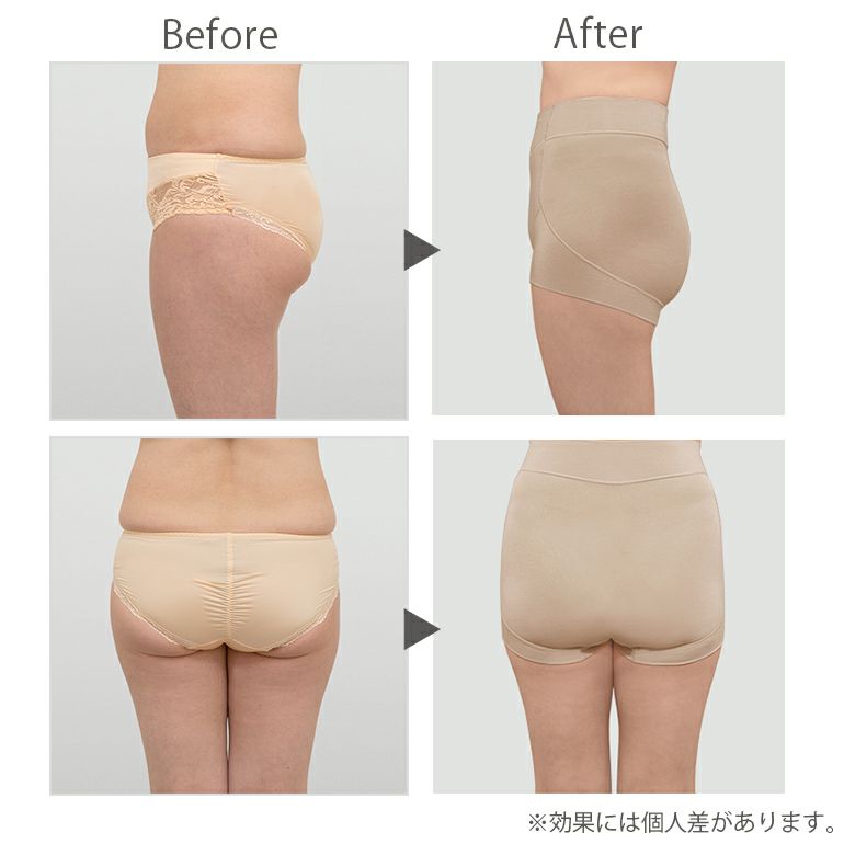- 一枚仕立てで優しくヒップを包み込み、綺麗な丸みのあるヒップラインをキープします。