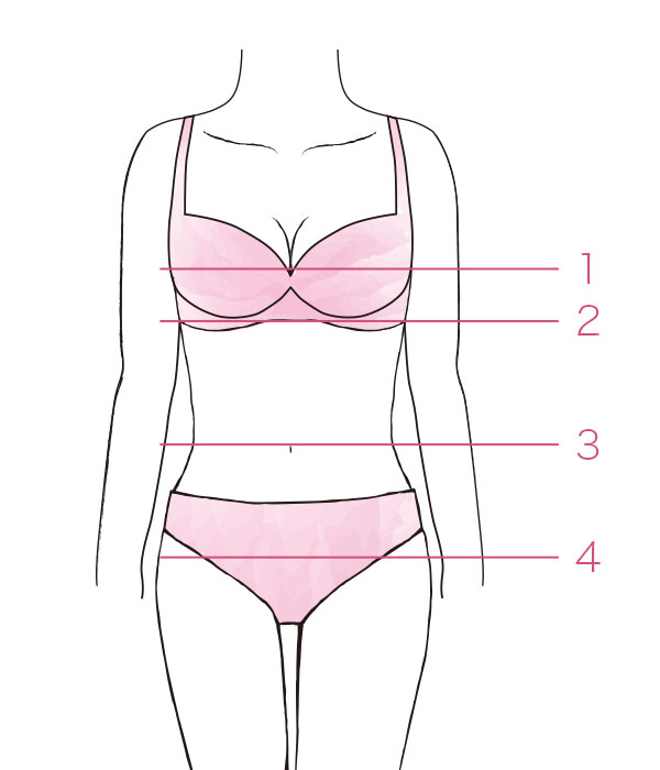 直立の状態でお胸のふくらみのすぐ下の部分を、水平に測りましょう。3.ウエスト